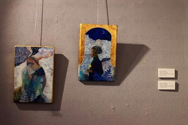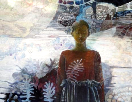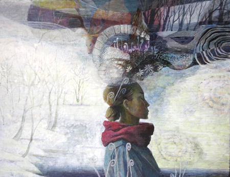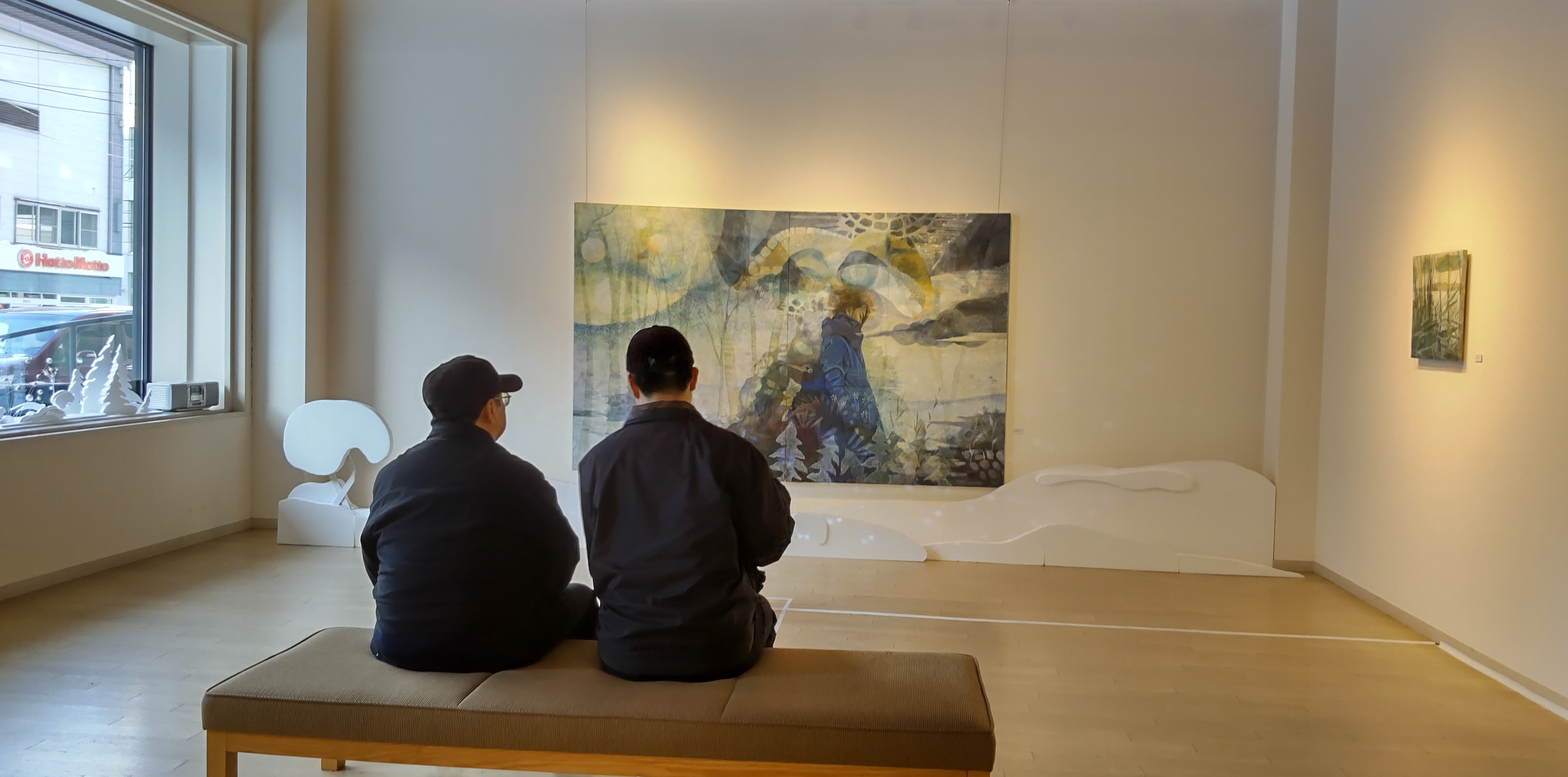 主なモチーフは、作家の原風景である北海道の「雪」「森」「人物」。静寂のリズムを感じるスタイルで、金箔や和紙など装飾的要素を取り入れ、テンペラ技法を駆使し、オリジナルな詩的世界を表現している。自然への畏怖や憧れを秘めたイメージを提供します。イコンも。(会期中は、作家在廊。)