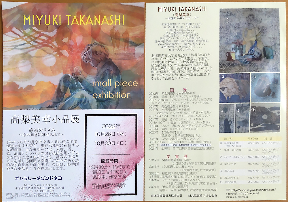 | 高梨美幸小品展 | 2022年10月26日(水)~30日(日) 静寂のリズム ~命の輝きに魅せられて~ ギャラリーメゾンドネコ |